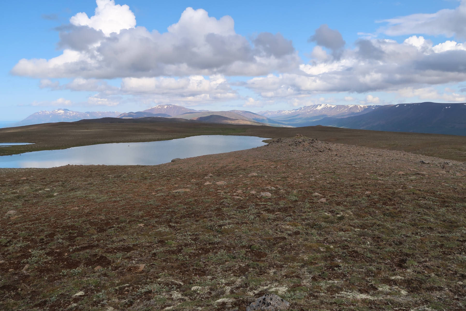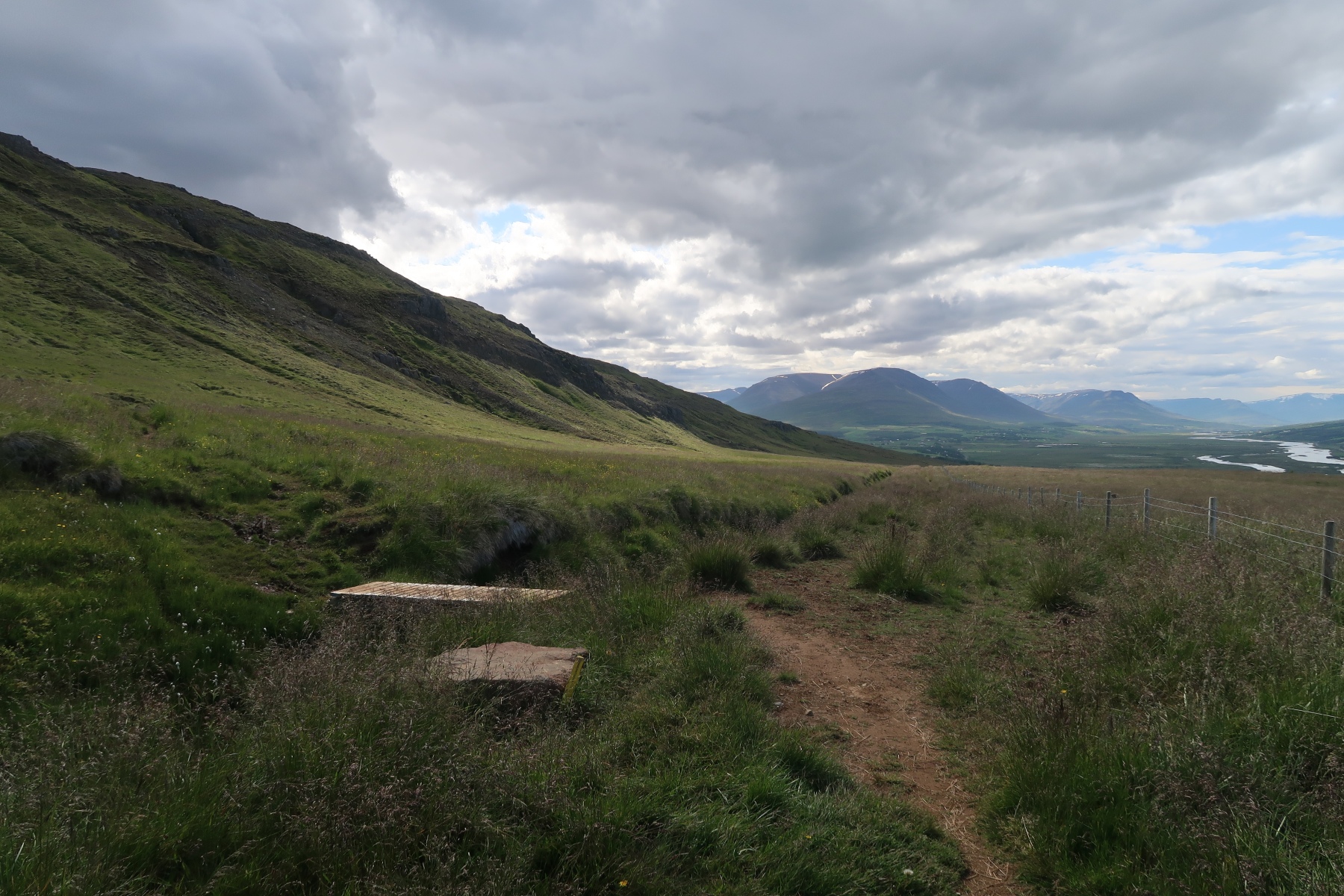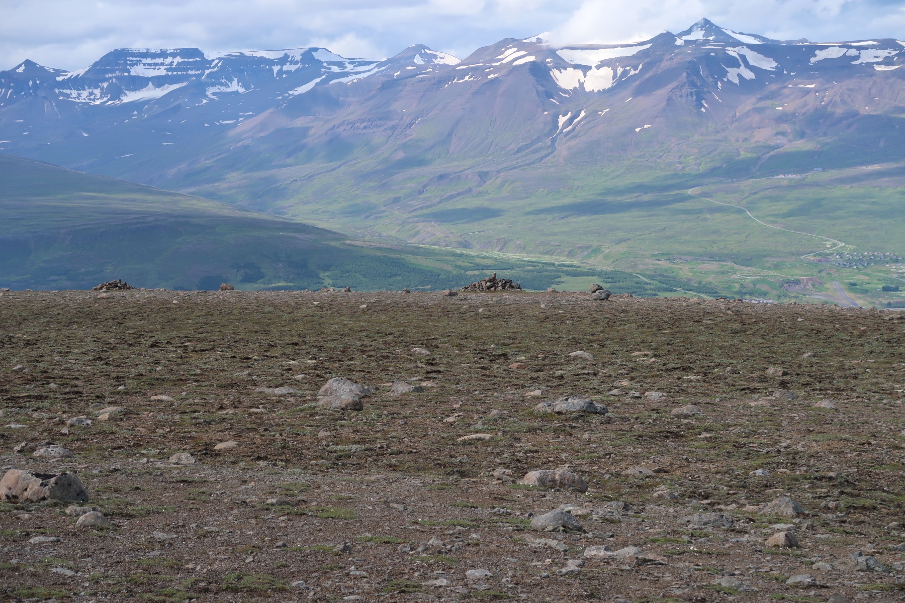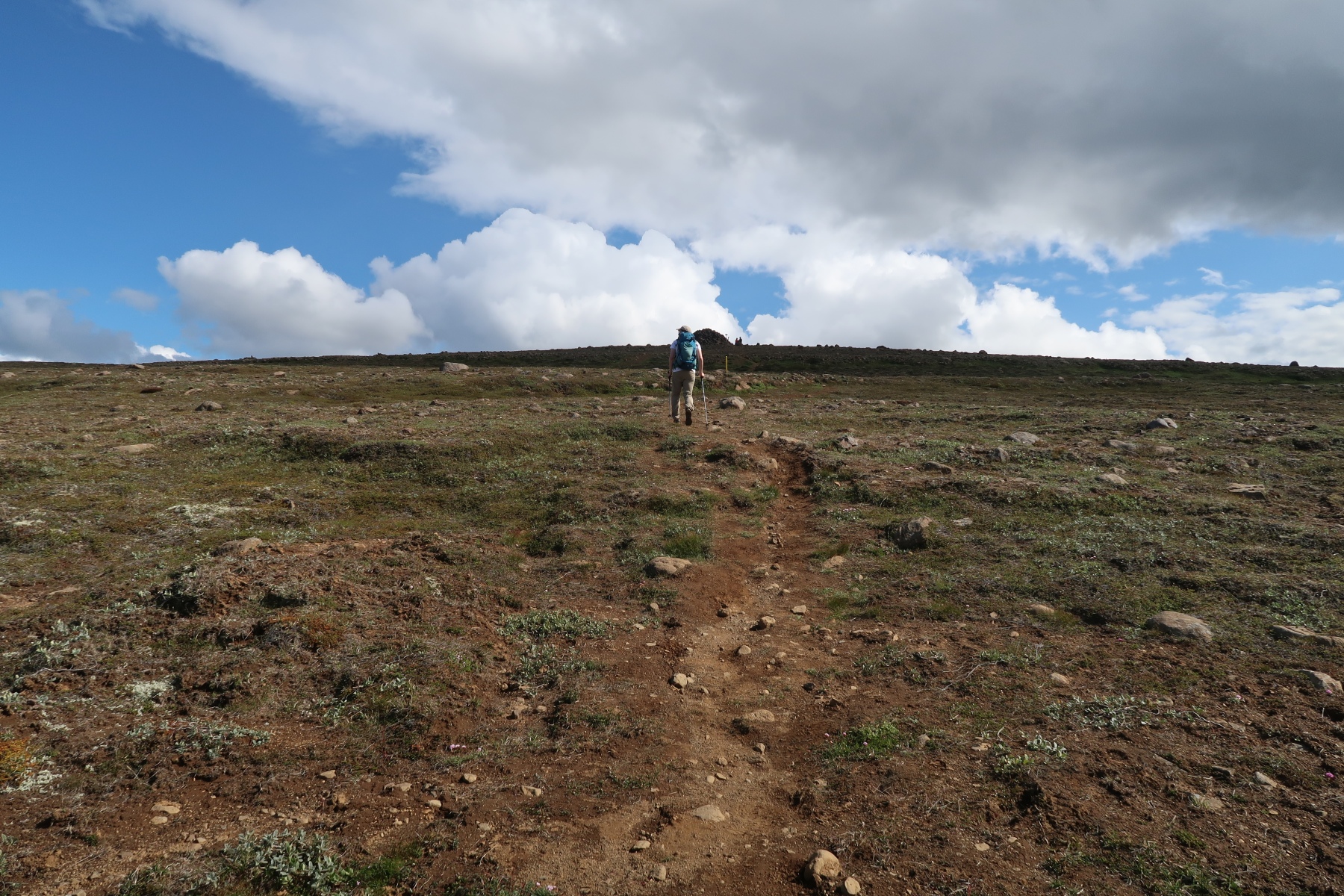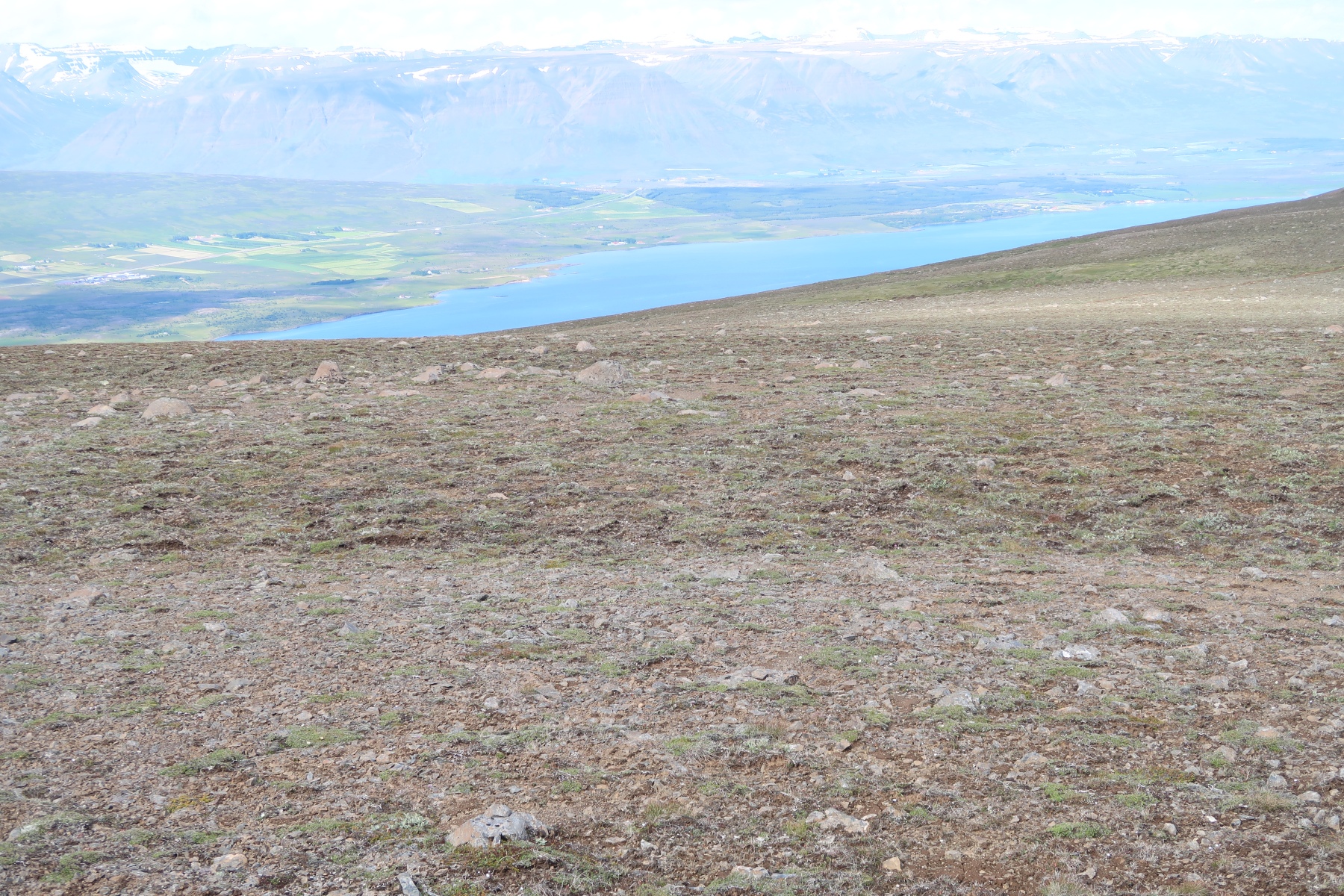 Aujourd’hui on doit attendre un peu avant de partir en randonné car il y a du brouillard le matin. Une fois le brouillard dissipé on va randonner juste derrière la maison, à Skolavarda.