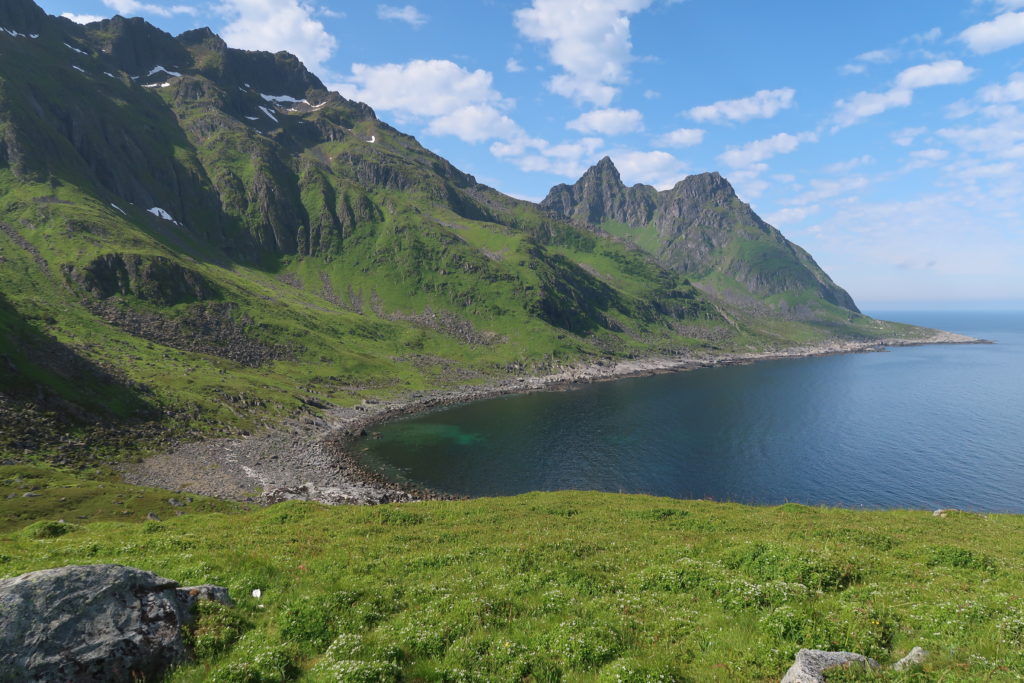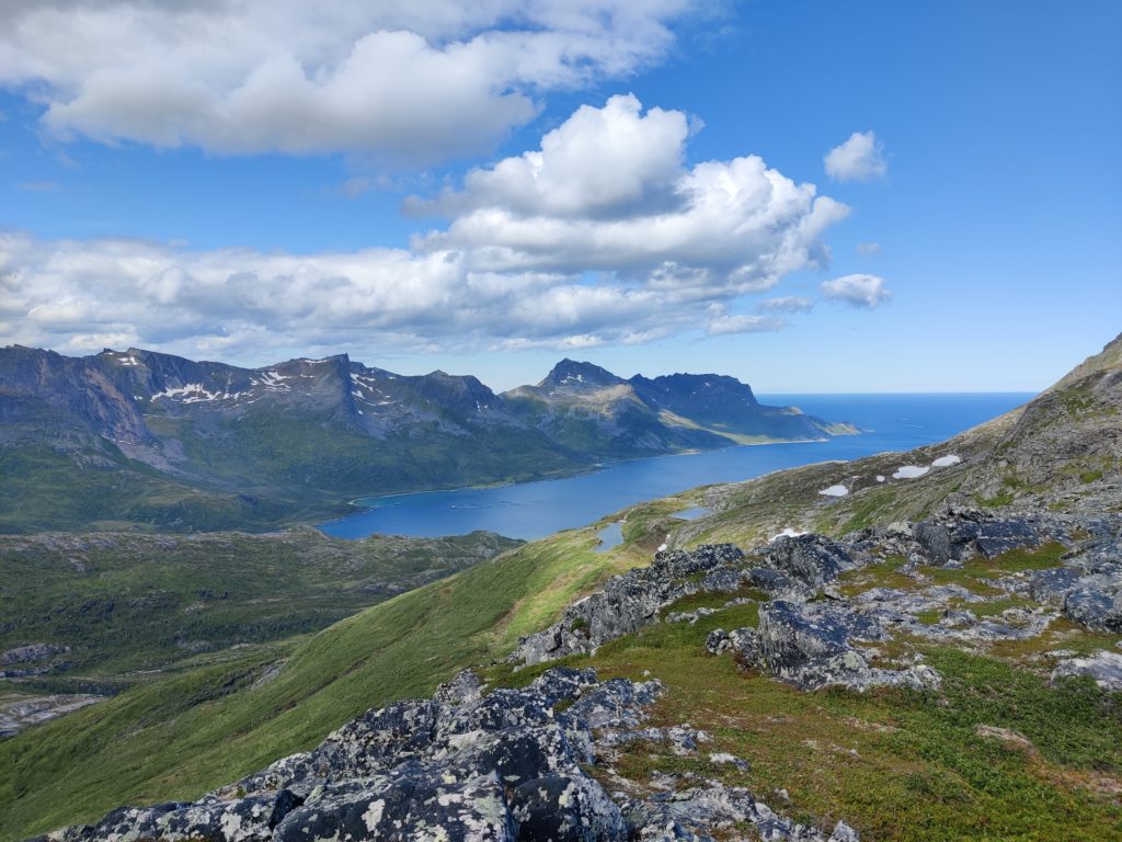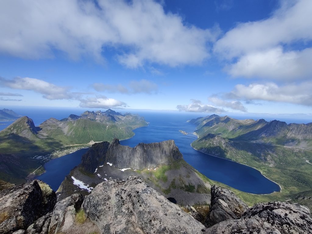 L’île de Senja se trouve dans le comté de Troms og Finnmark. Il s’agit de la deuxième plus grande île de Norvège après Svalbard. Elle est située entre l’île de Kvaloya (nord) et Andoya (sud). L’île de Senja a une forme originale. Elle est découpée par plus de 10 fjords surmontés par différents massifs. Senja est un concentré de Norvège. Des fjords, des montagnes, des lacs, des routes magnifiques, des super randonnées. Et aussi quelques villages vraiment magnifiques. Pour venir sur l’île de Senja, il est possible de prendre le ferry ou de conduire par le pont de Finnssnes. De notre côté on est arrivés via la route depuis Tromso. On a passé une première semaine au sud de l’ile (Skrolsvik) et on a ensuite passé 10 jours au nord (Botnhamn).Que faire à Senja?